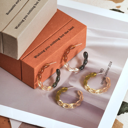 煙灰雲石樹脂半圈耳環 Jade Arc, Half Hoop Earrings