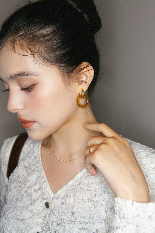 咖啡链锁的黄金时代耳圈"Golden Coffee Chain" Hoop Earrings